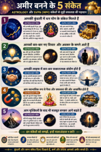 Is article me hum 5 aise powerful sanketon ko samjhenge jo astrology aur SVPN (sapno ke sanket) se jude hue hain aur aapko indicate karte hain ki aap ameer ban sakte ho.